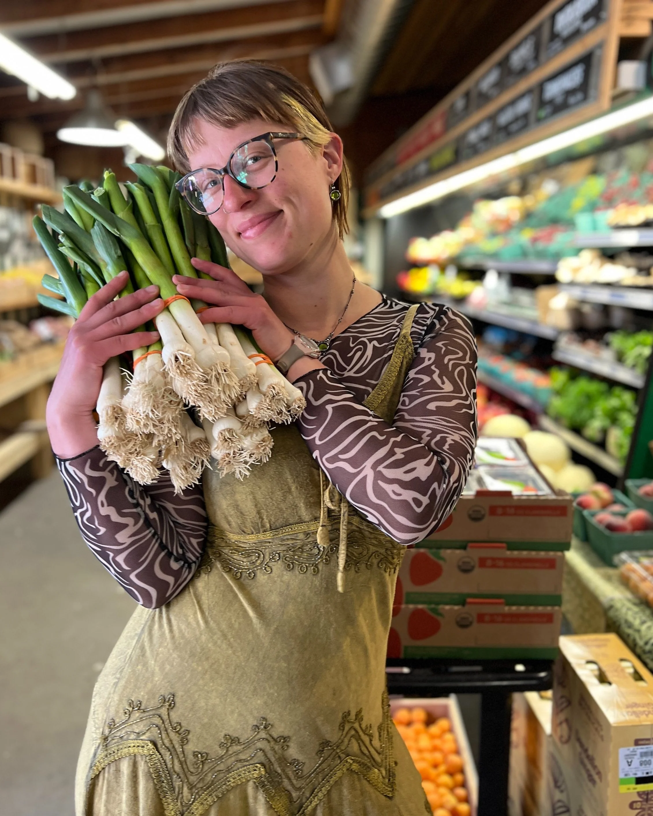 No grill master turns homeward from their supply run without a bountiful basket of alliums (onion family). Fortunately for the community, the produce porch has a bevy of recent arrivals from the allium family that are sure to add that sweet, charred flavor of grilled onions to the spread. For a limited time we have an epic 99 cent deal on Washington yellow onions from Organically Grown Company. Stock up for your next cookout! We also have glorious bunches of green onions in this week from Red Dog Farm, so beautiful that they’d make Booker T. & the M.G.’s proud. Another staff favorite from the onion fam for the grill is Red Dog and Midori farm’s green garlic bunches.