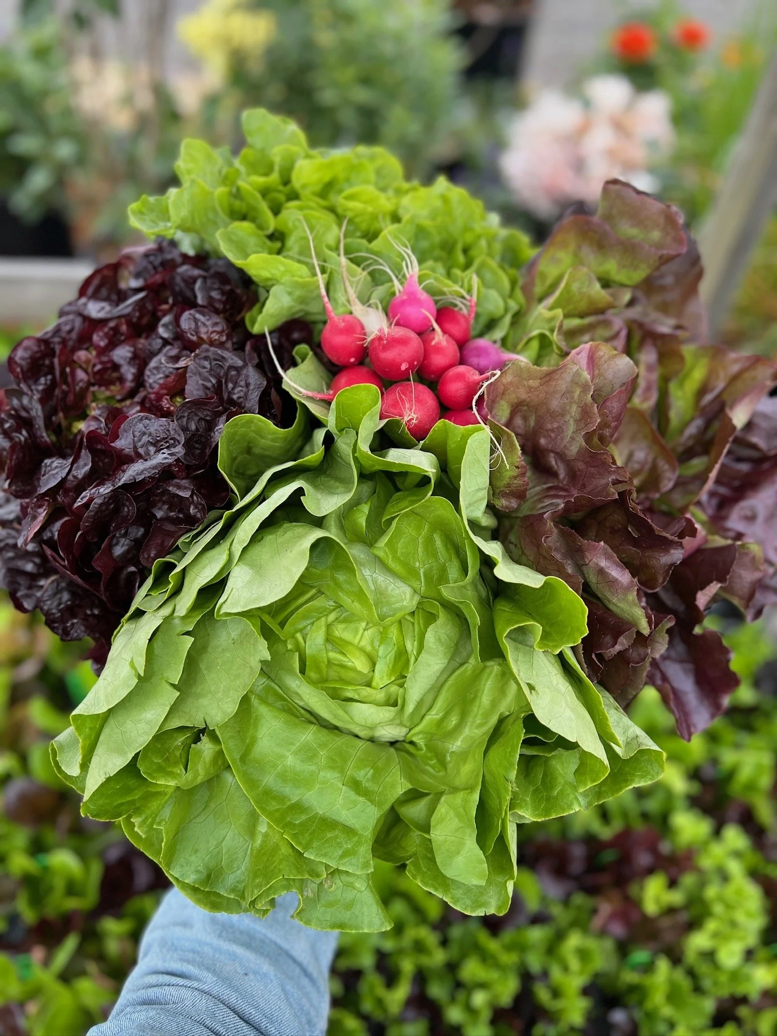 It is patently obvious when local head lettuce shows up on the scene at the Produce Porch. Heads are bigger, fresher, and cleaner, almost glowing with their vitality. First to market this year has been Pierce Kennedy of Soft Step Farm. He has been supplying weekly drops of Red Butter, Green Oakleaf, and Red Oakleaf, all of which are totally stunning. Hot on his heels are Jeff and Janet of Stellar J Farm. They will have a steady supply of Red and Green Butter lettuce in the weeks to come. We also have a gorgeous lot of Stellar J’s crisp, sweet spring spinach at the moment, as well as their “Spring Special” spicy salad mix. It’s time to get leafy with the locals in your diet!
