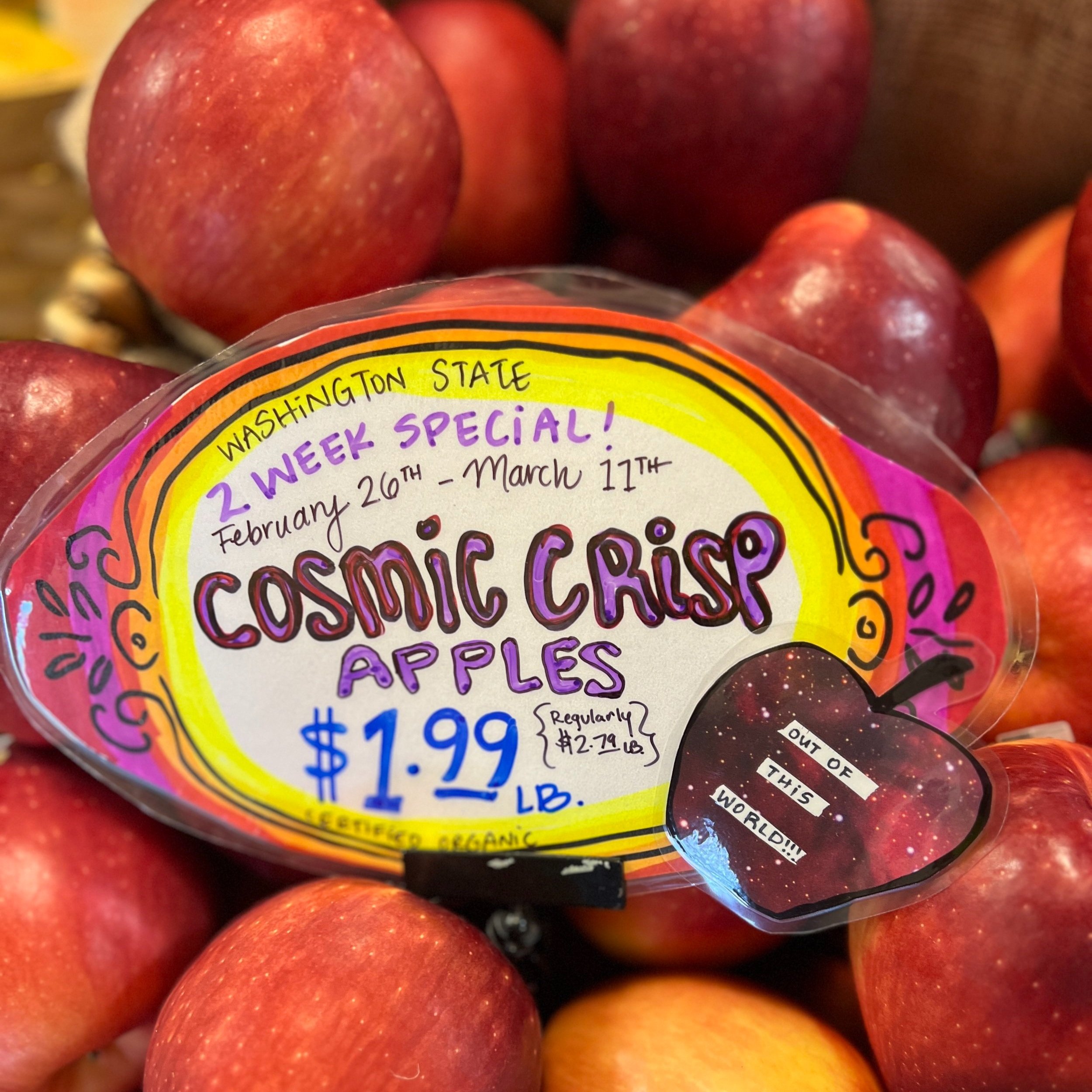 The produce deals for the next several weeks feature some fabulous fruits. Cosmic Crisps will be $1.99/lb, and the luscious Honeygold Grapefruit will be clocking in at $2.49/lb. We appreciated all your support with the 4lb navel bags from Johansen Ranch, we sure moved through a great deal! They are still available while supplies last.