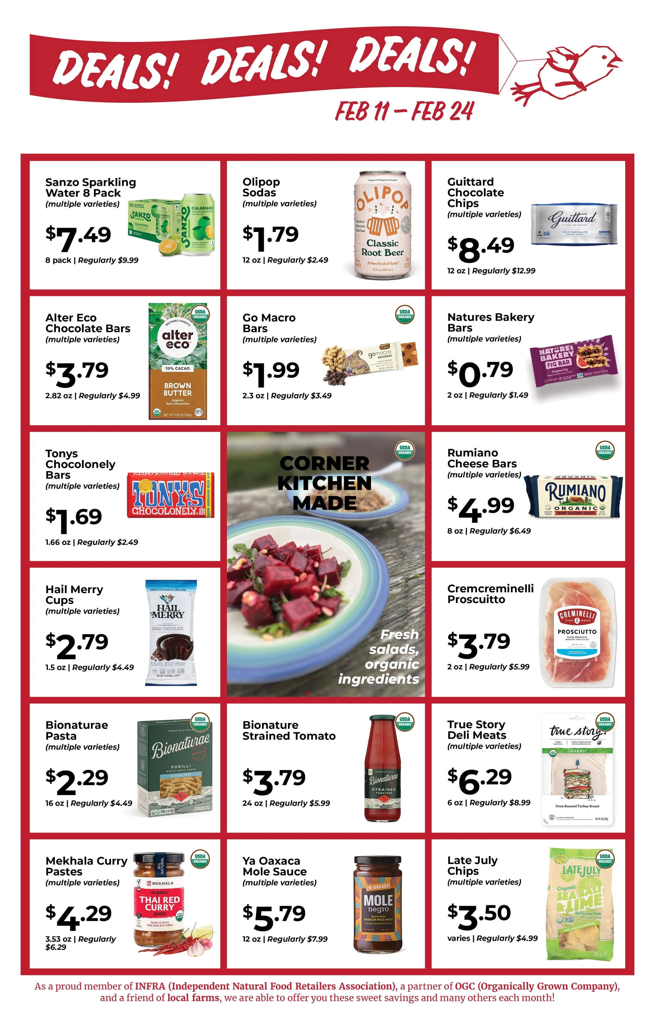 Thanks to our new friends at the Independent Natural Food Retail Association (aka INFRA) we’re now a part of a cooperative of other independently owned stores with shared values and similar stories—and together we’re able to lock in better deals and big savings. We’re thrilled to be able to center our local abundance alongside more affordable grocery goods and staples like these. So grab these deals while they’re here, and lookout for whole new set of DEALS tags every other Wednesday!